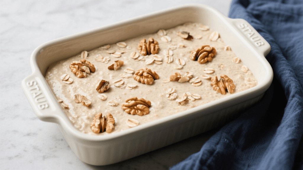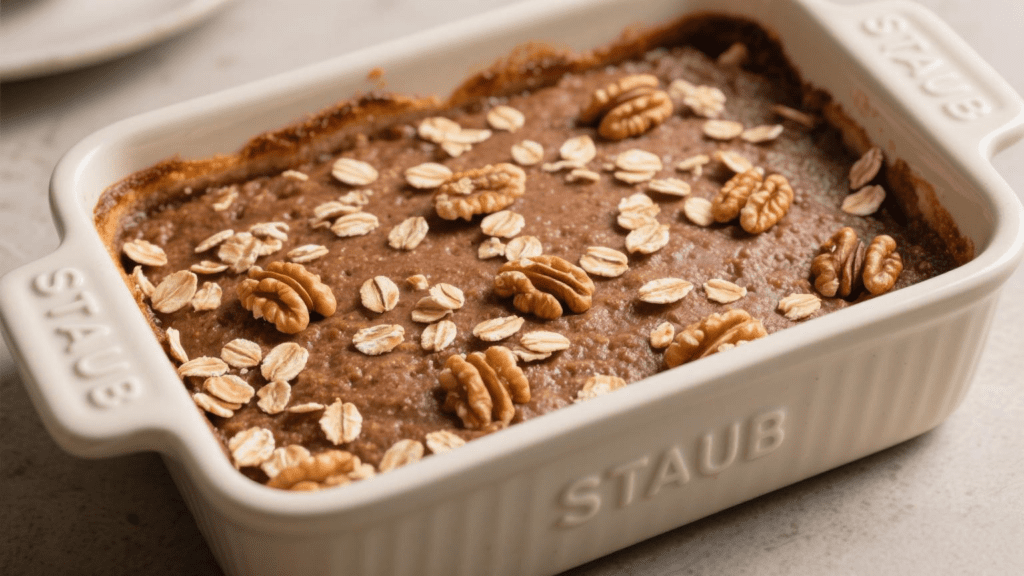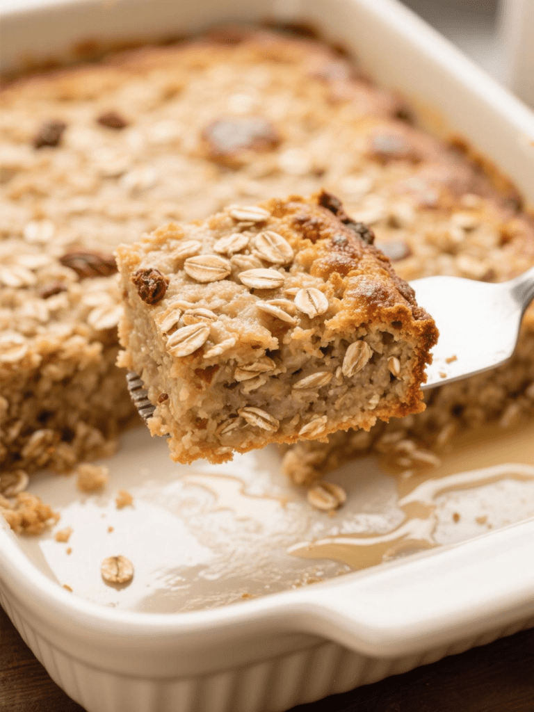 The final texture is soft and mildly sweet. The baked oatmeal holds its shape effectively and reheats without becoming dry 🍌.
