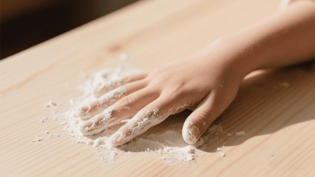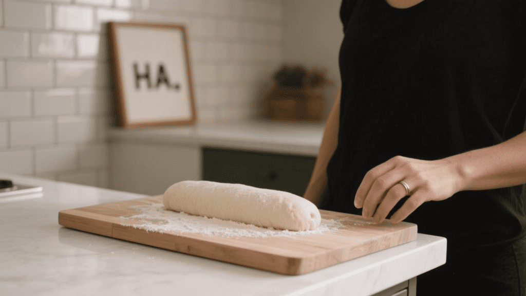 - Prepare the Work Surface: Dust your countertop with a layer of flour. Remove the dough from the bowl and set it down on the floured surface.