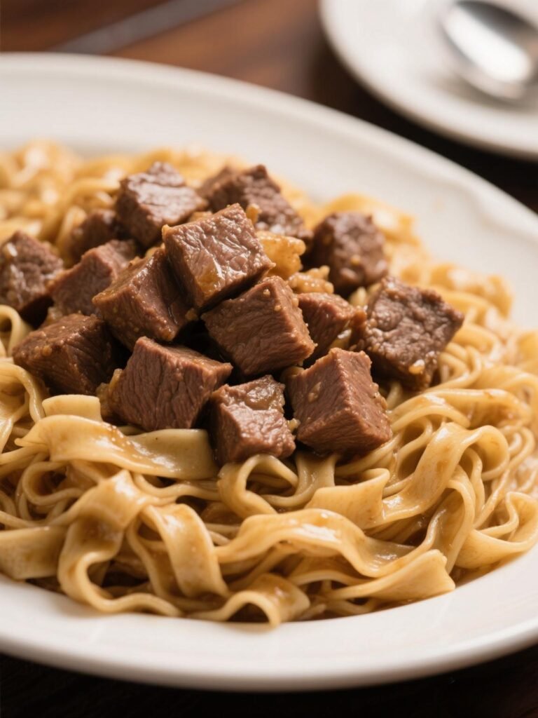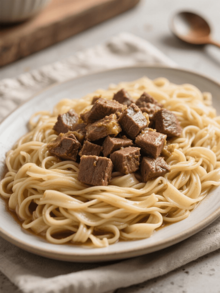 This recipe for beef and noodles qualifies as an easy weeknight meal that appeals to most households. It consists of tender beef served over egg noodles with a straightforward sauce. The prep work requires minimal effort, and the dish produces high-quality leftovers.