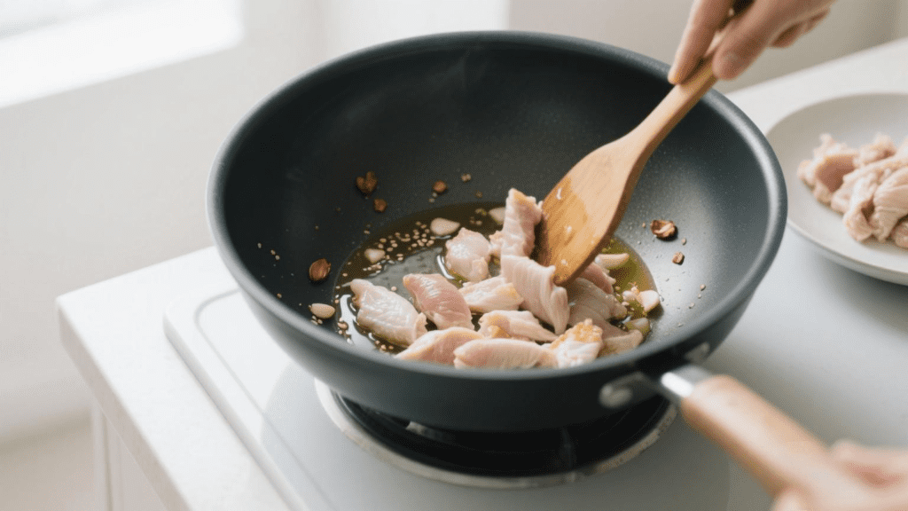 - Velveting (healthier version): toss chicken with a little cornstarch + egg white (or just cornstarch) and a splash of soy sauce; this keeps it tender with less oil