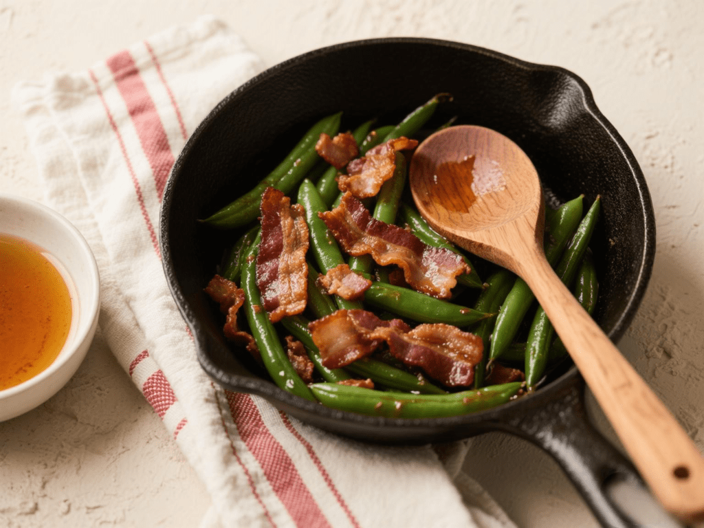 Cooking bacon green beans in a skillet is straightforward. Several quick adjustments can make the dish suit your preferences.