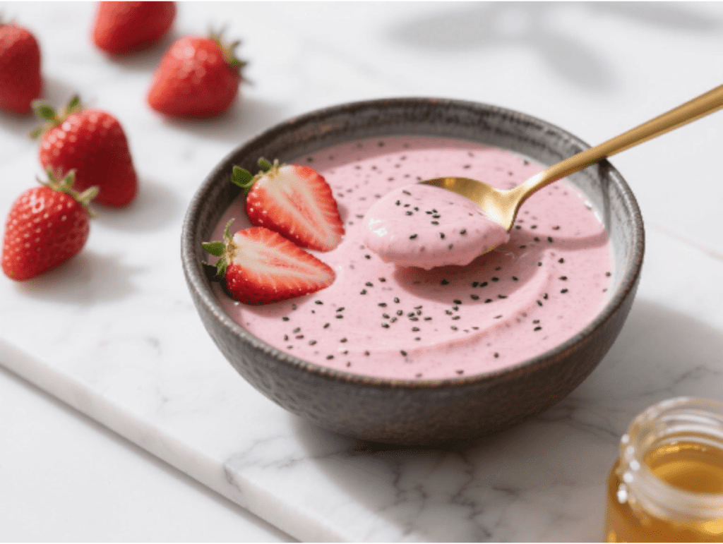 This strawberry chia pudding with Greek yogurt offers a creamy make-ahead breakfast that you can prepare in minutes and then eat straight from the fridge. It delivers a filling and gently sweet start to the day.